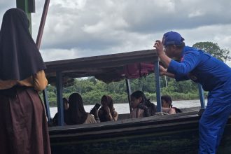 Polres Lamandau – Personel Polsek Lamandau Melaksanakan Patroli dan Pantau Cek debit air Sungai Lamandau Antisipasi terjadinya Bencana banjir di Wilayah Kabupaten Lamandau Khususnya Kecamatan Lamandau yang bertempat di Dermaga Tapin Bini, kecamatan Lamandau, Kabupaten Lamandau, Provinsi Kalteng, Sabtu (23/8/25) Pagi.