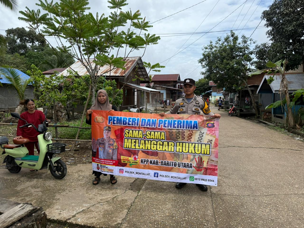 Kapolres Barut AKBP Singgih Febiyanto, S.H., S.I.K. melalui Kapolsek Montallat IPDA RADEN KOMARUDIN HIDAYATULLOH S.H., mengatakan anggota Polsek Montallat dengan humanis memberikan pemahaman dan edukasi kepada masyarakat untuk bersama-sama memberantas aktivitas pungutan liar serta mengedukasi bahwa pemberi dan penerima sama-sama melanggar hukum dan akan dikenakan sanksi Pidana .”Jum’at (19/09/2025) Pagi mulai Pukul 09.00 WIB.