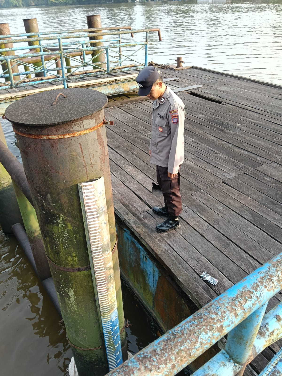 Polres Lamandau – Personil Polsek Bulik melakukan kegiatan rutin pengecekan debit air DAS lamandau di TMA Kelurahan Nanga Bulik, Jumat (26/9/25) pagi