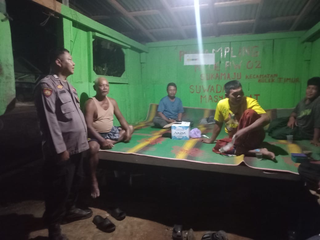 Polres lamandau – Bhabinkamtibmas Bripka Langgeng S. Polsek Bulik, Menyambangi Piket jaga sat kamling Desa Suka Maju, Kec. Bulik Timur, Kabupaten Lamandau. Prov Kalteng yang sedang jaga pos kampling, Sabtu (27/9/25) malam.