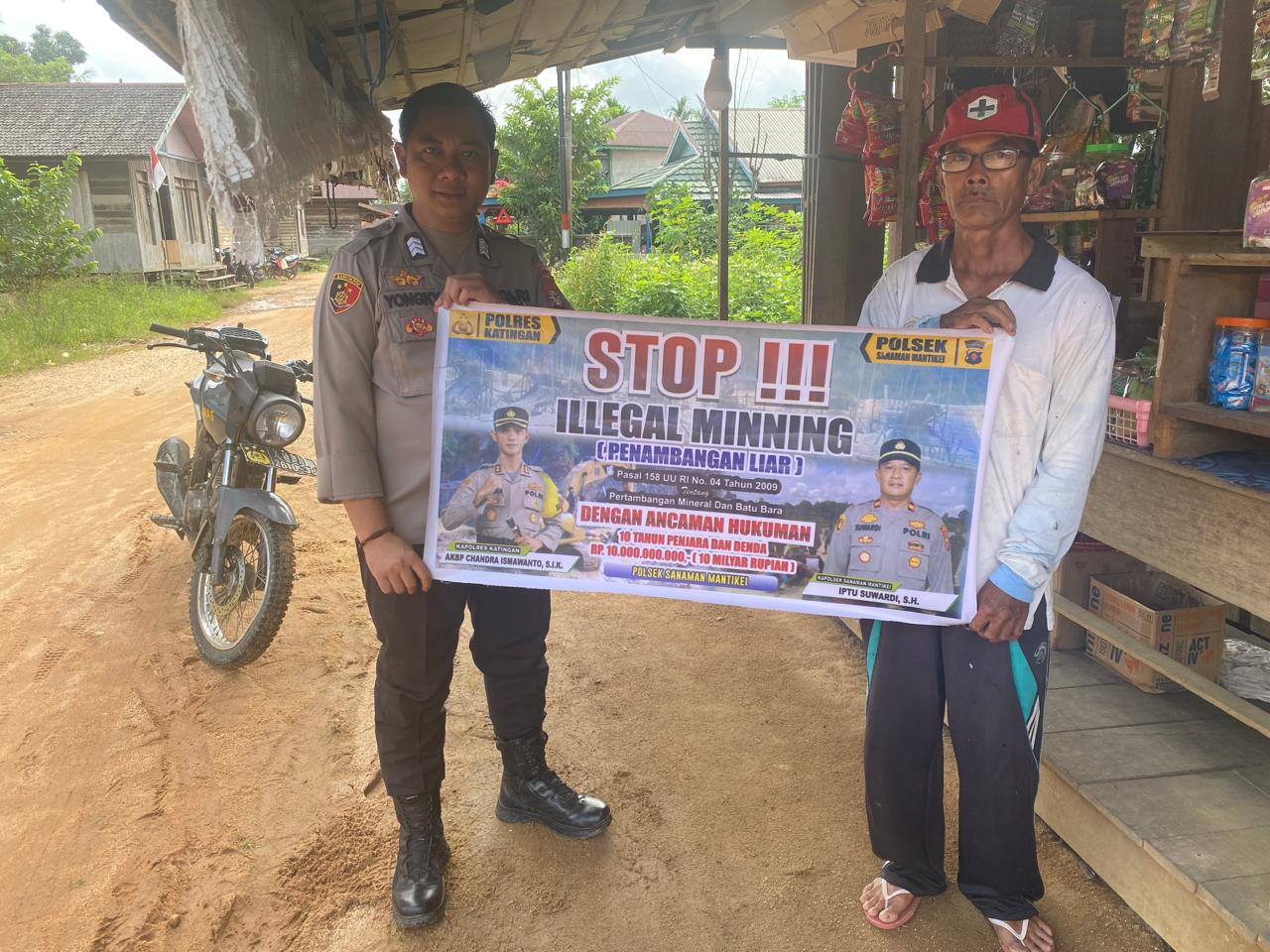 Kapolres Katingan AKBP CHANDRA ISMAWANTO, S.I.K., melalui Kapolsek Sanaman Mantikei Iptu SUWARDI, S.H., menjelaskan kegiatan Bhabinkamtibmas jajaran Polres Katingan dengan cara sosialisasi kepada masyarakat agar mengerti dan memahami tentang larangan Ilegal Mining serta mengerti bahwa dampak dan akibat yang di timbulkan akibat Illegal mining tersebut.