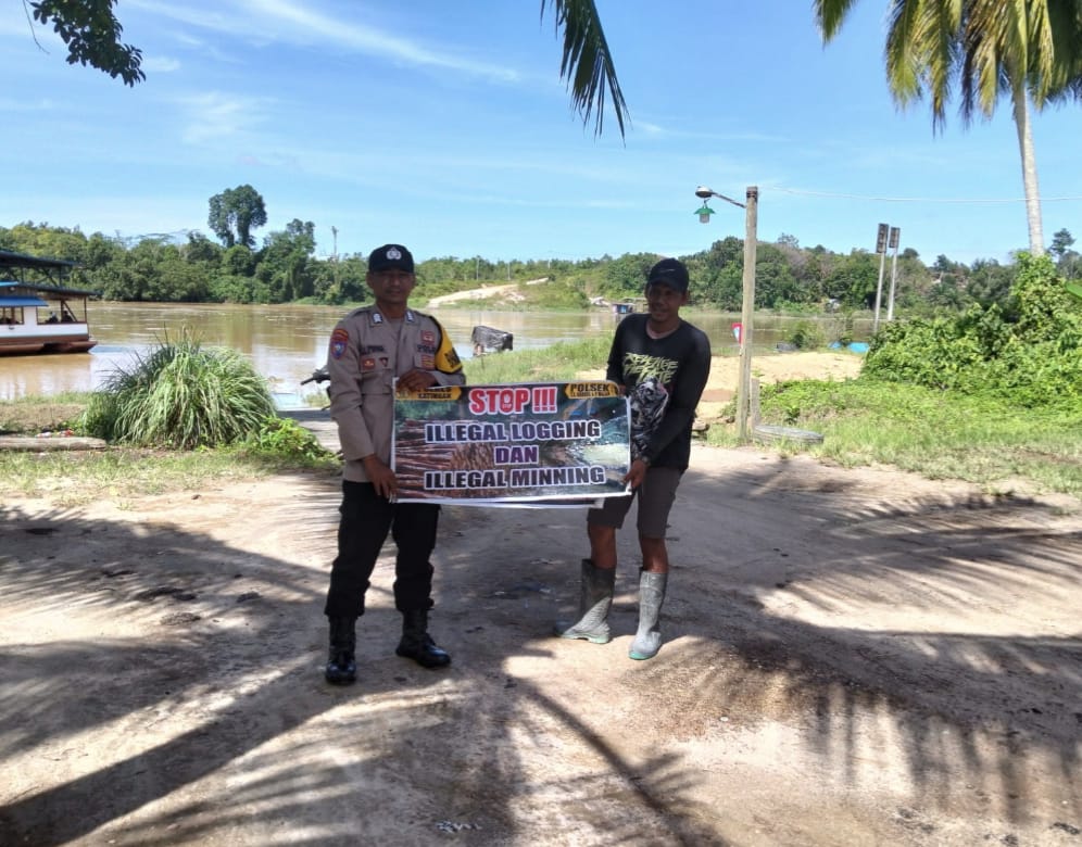 Tribaratanews.kalteng.polri.go.id-Polres Katingan – Salah satu cara Polsek Tws. Garing dan Pulau Malan, Polres Katingan, Polda Kalimantan Tengah, anggota Polsek Tws. Garing dan Pulau Malan melaksanakan Sosialisasi “Stop!!! Kejahatan Terhadap Lingkungan “Berupa Larangan Melakukan Kegiatan Ilegal Logging dan Ilegal Meaning”, Selasa (07/10/2025) Pagi.