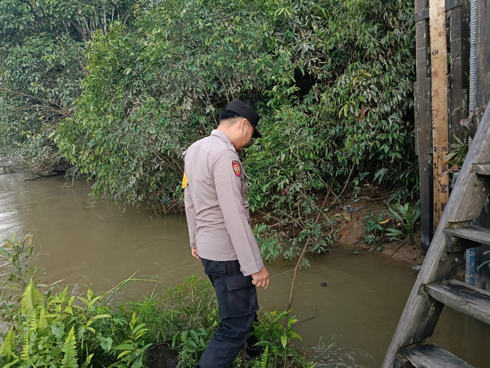 Polres Lamandau – Personel Polsek Lamandau Melaksanakan Patroli dan Pantau Cek debit air Sungai Lamandau Antisipasi terjadinya Bencana banjir di Wilayah Kabupaten Lamandau Khususnya Kecamatan Lamandau yang bertempat di Dermaga Tapin Bini, kecamatan Lamandau, Kabupaten Lamandau, Provinsi Kalteng, Jumat (17/10/25) Pagi.