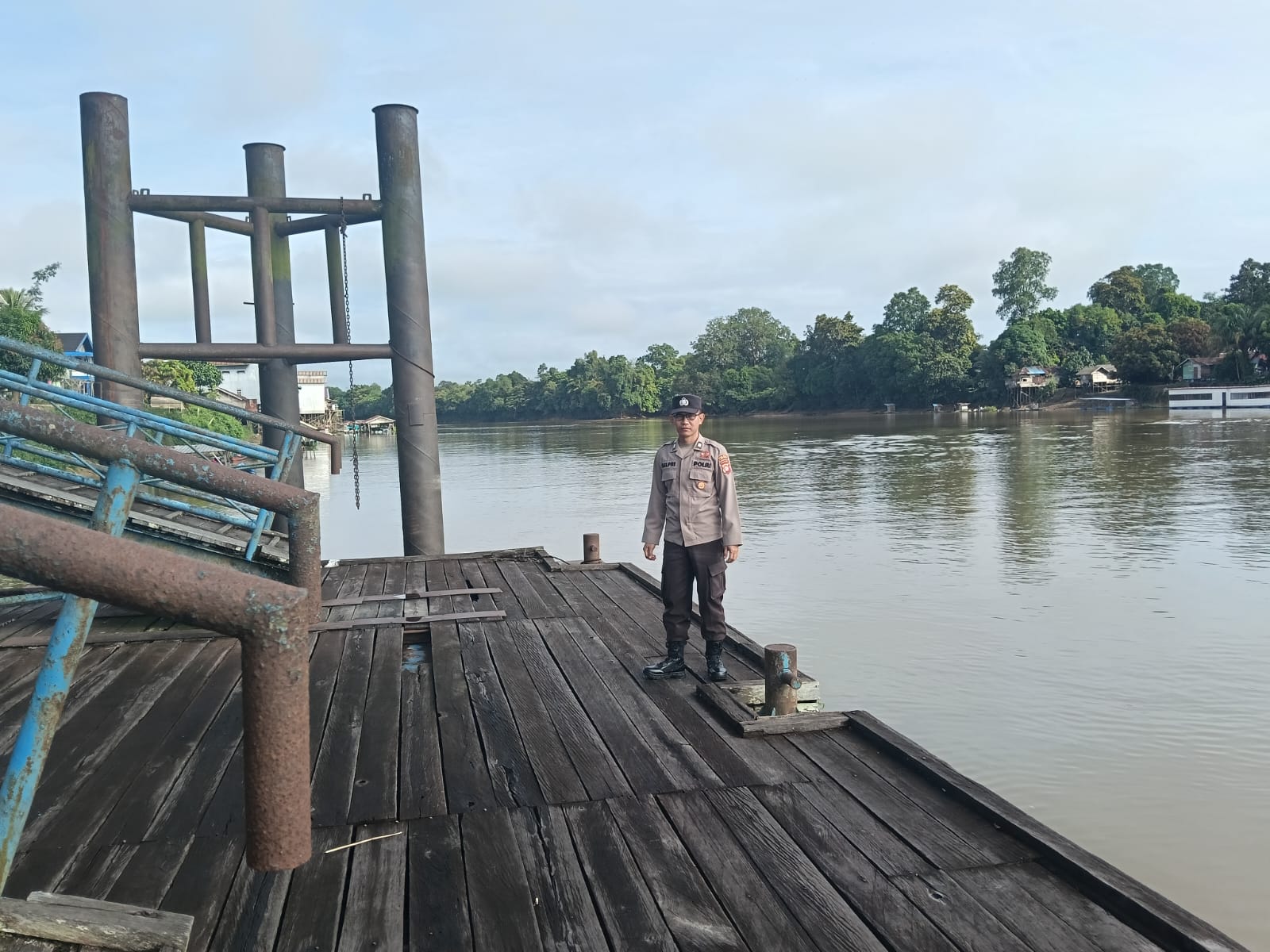 Polres Lamandau – Personil Polsek Bulik melakukan kegiatan rutin pengecekan debit air DAS lamandau di TMA Kelurahan Nanga Bulik, Senin (20/10/25) pagi