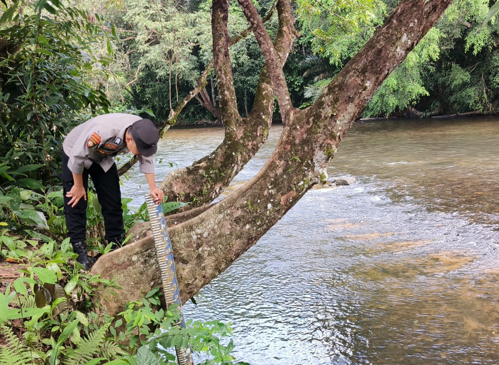 Polres Lamandau – Polsek Delang, Piket Polsek Delang melakukan kegiatan rutin pengecekan debit air DAS Delang di TMA Kelurahan Kudangan RT.02 Kecamatan Delang, Minggu (19/10/25) Pagi