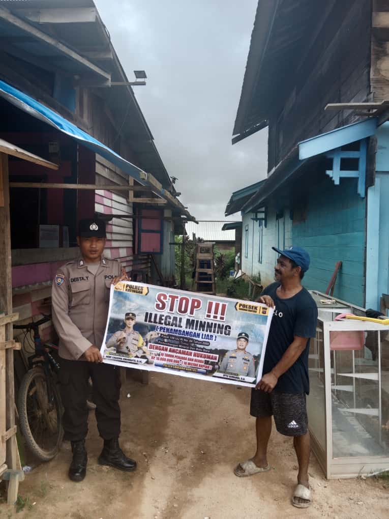 Tribratanews.kalteng.polri.go.id – Polda Kalteng – Polres Katingan – Personel Bhabinkamtibmas Polsek Sanaman Mantikei Brigpol Desta melaksanakan sosialisasi tentang larangan terhadap pelaku Illegal Mining kepada masyarakat di Desa kamanto selasa(21/10/2025)