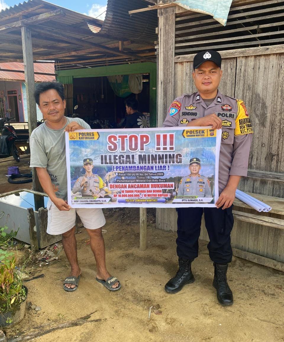 Kapolres Katingan AKBP CHANDRA ISMAWANTO, S.I.K., melalui Kapolsek Sanaman Mantikei Iptu SUWARDI, S.H., menjelaskan kegiatan Bhabinkamtibmas jajaran Polres Katingan dengan cara sosialisasi kepada masyarakat agar mengerti dan memahami tentang larangan Ilegal Mining serta mengerti bahwa dampak dan akibat yang di timbulkan akibat Illegal mining tersebut.