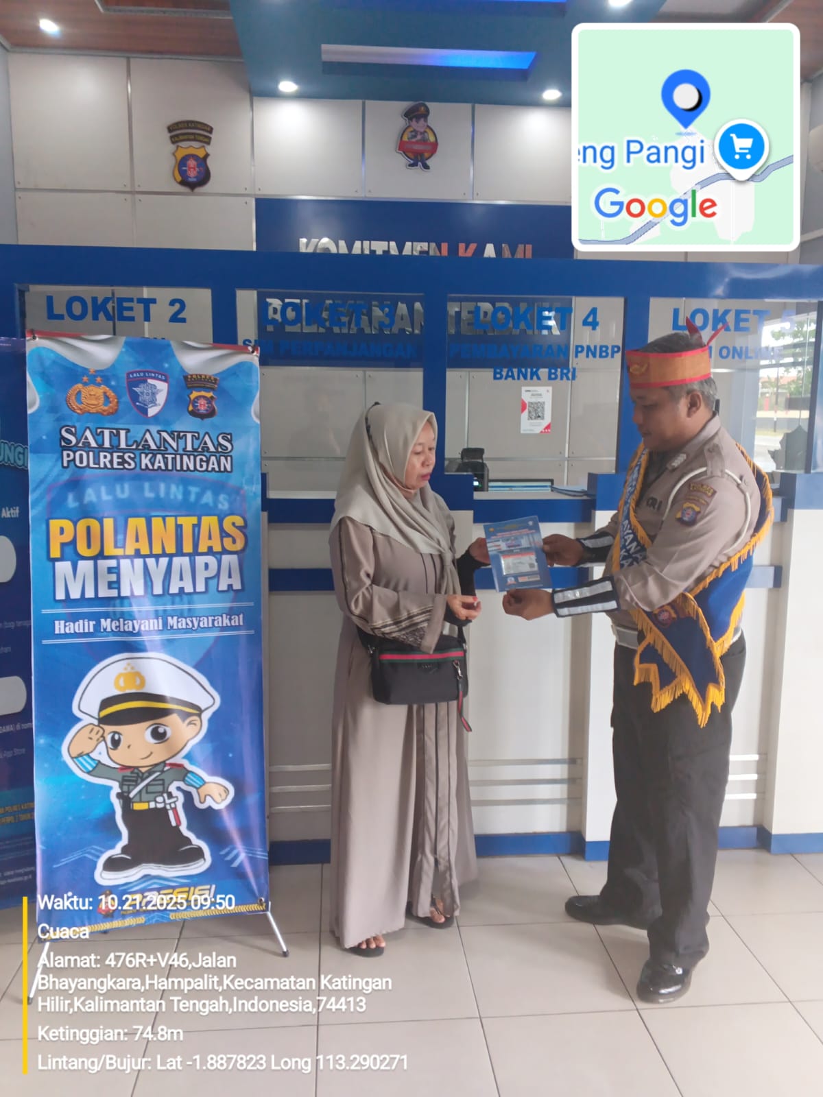 Personil Satlantas Polres Katingan sebagai anggota preemtif bergerak turun ke Jalan untuk meninformasikan kepada pengendara melalui Polantas Menyapa, untuk menciptakan keamanan dan keselamatan berlalu lintas.