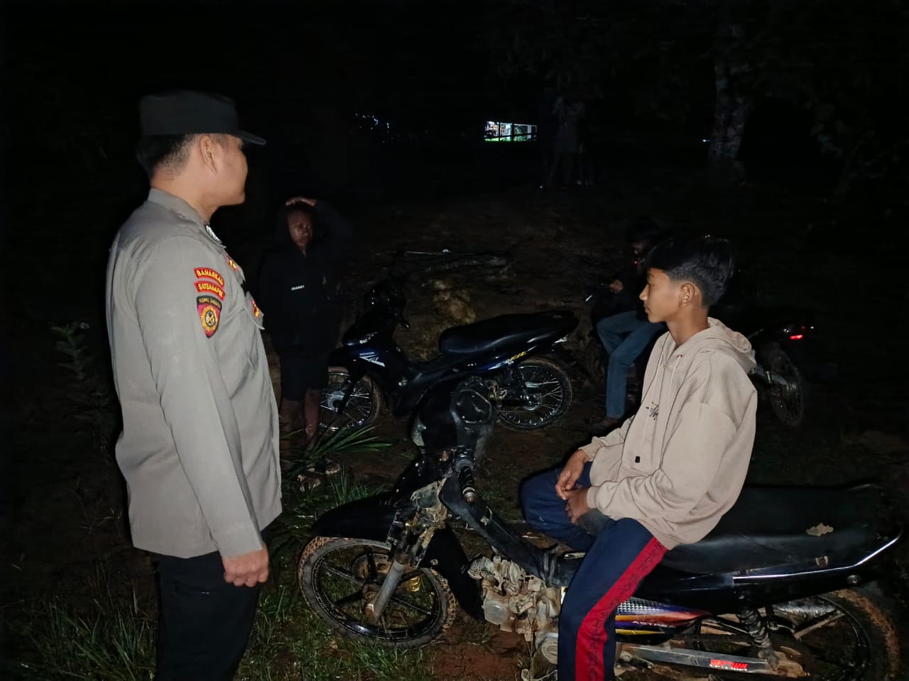 Personel Polsek Lamandau Sambangi Remaja yang Nongkrong, Berikan Sosialisasi Tentang Kenakalan Remaja
