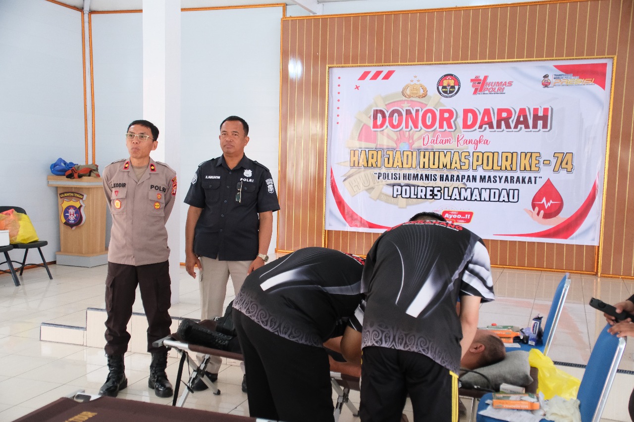 Nanga Bulik — Dalam rangka memperingati Hari Ulang Tahun (HUT) Humas Polri ke-74, Polres Lamandau menggelar kegiatan donor darah dengan tema “Polisi Humanis Harapan Masyarakat”, bertempat di Joglo Mapolres Lamandau, Rabu (22/10/25).