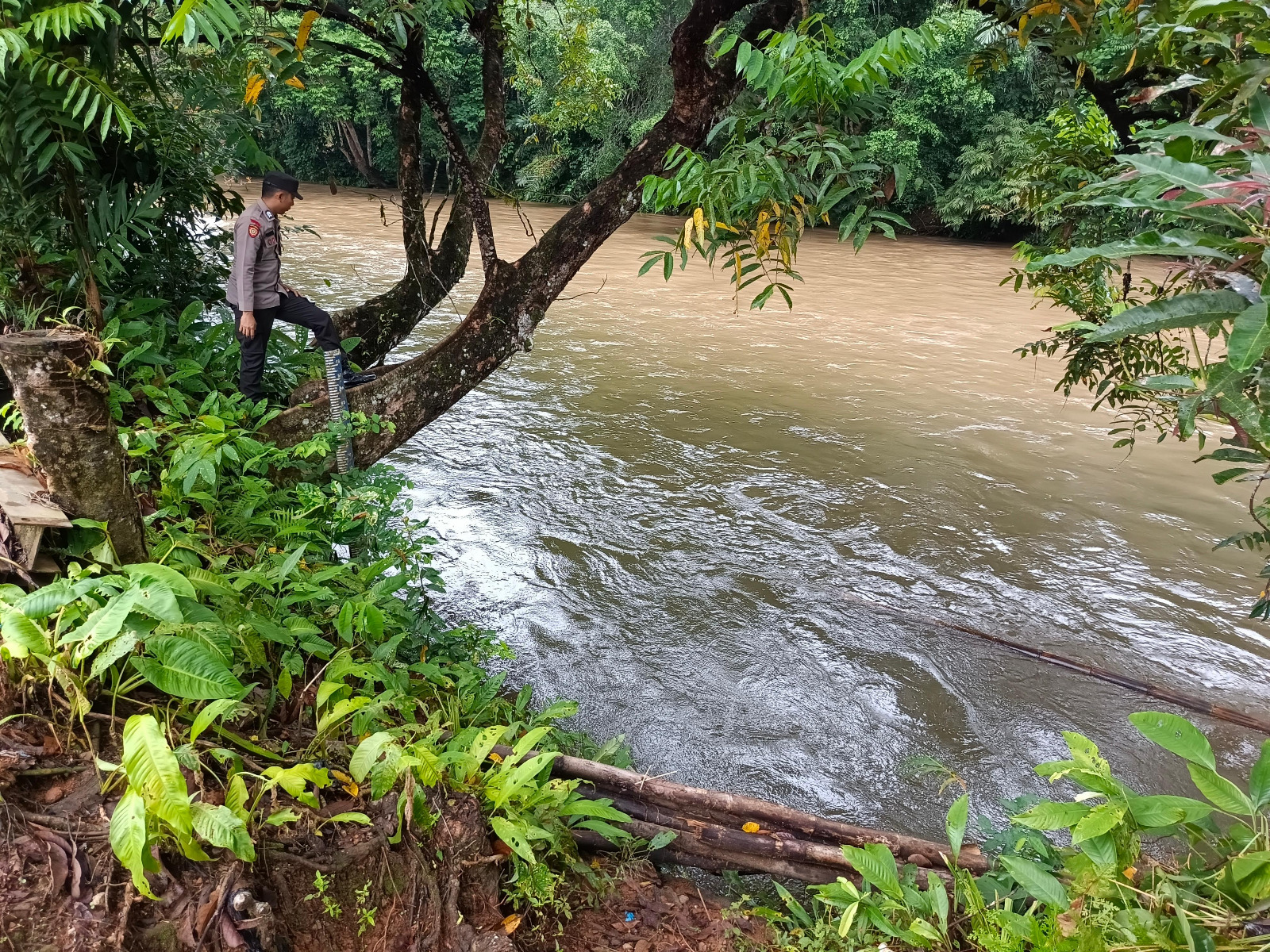 Pengecekan debit air DAS Delang oleh anggota piket Polsek Delang dilakukan secara rutin setiap hari dan saat ini kedalaman air 105 cm pada Level NORMAL mengalami kenaikan 25 cm pada Level NORMAL masih dilevel status aman. (Hms)
