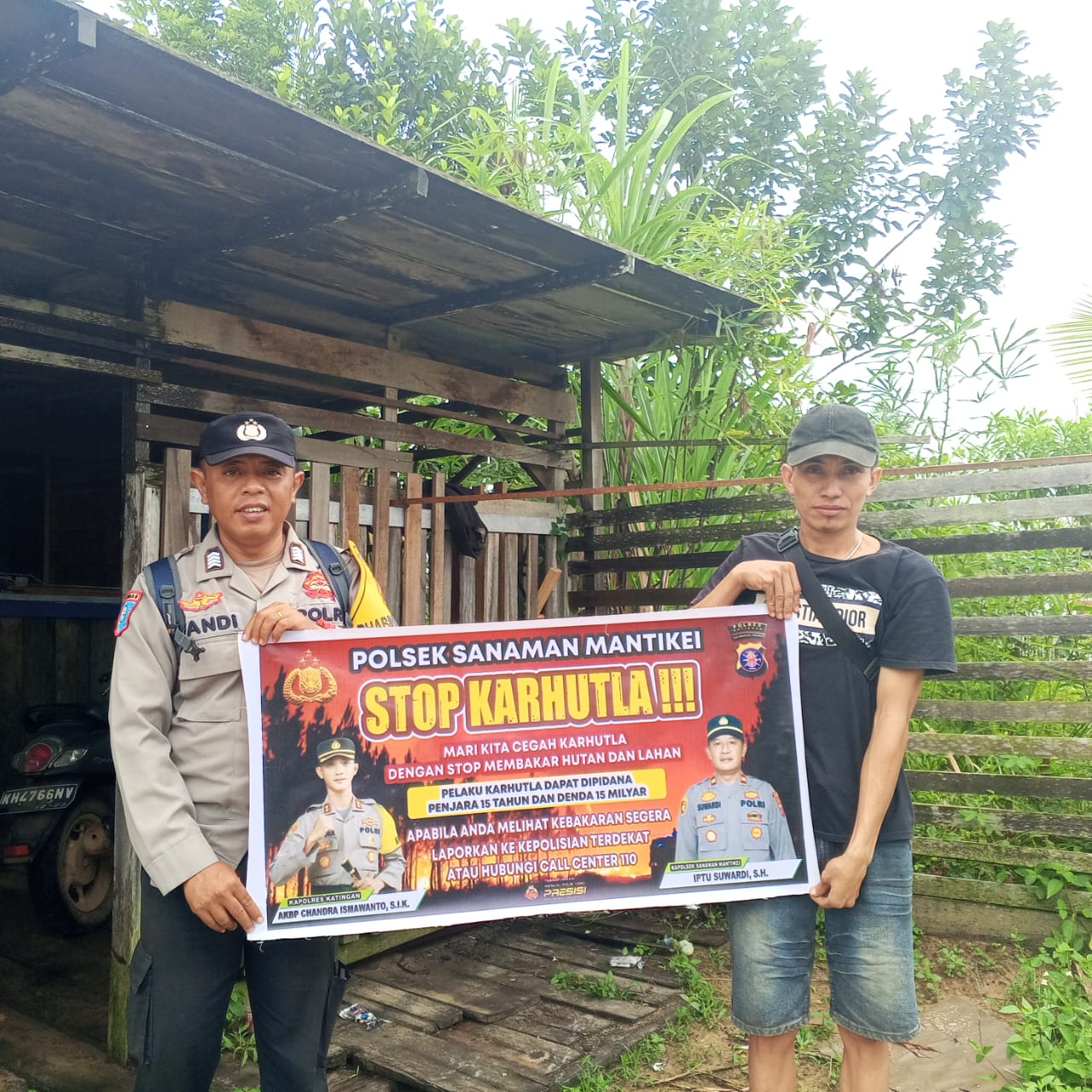Polres Katingan- Personil Polsek Sanaman Mantikei melakukan sosialisasi larangan membuka hutan dan lahan dengan cara di bakar di wilayah Kecamatan Sanaman Mantikei, Sabtu (01/11/2025).