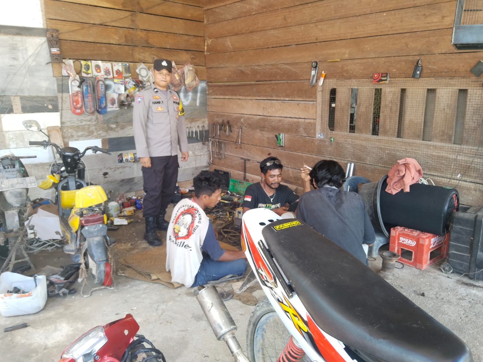 Menyambangi pekerja ditempat kerjanya dan pada kesempatan yang baik tersebut, Personil Bhabinkamtibmas berdialog menyampaikan pesan-pesan kamtibmas. Berhubung cuaca yang tidak menentu untuk membatasi aktivitas di luar rumah serta untuk tetap disiplin menjaga kesehatan.