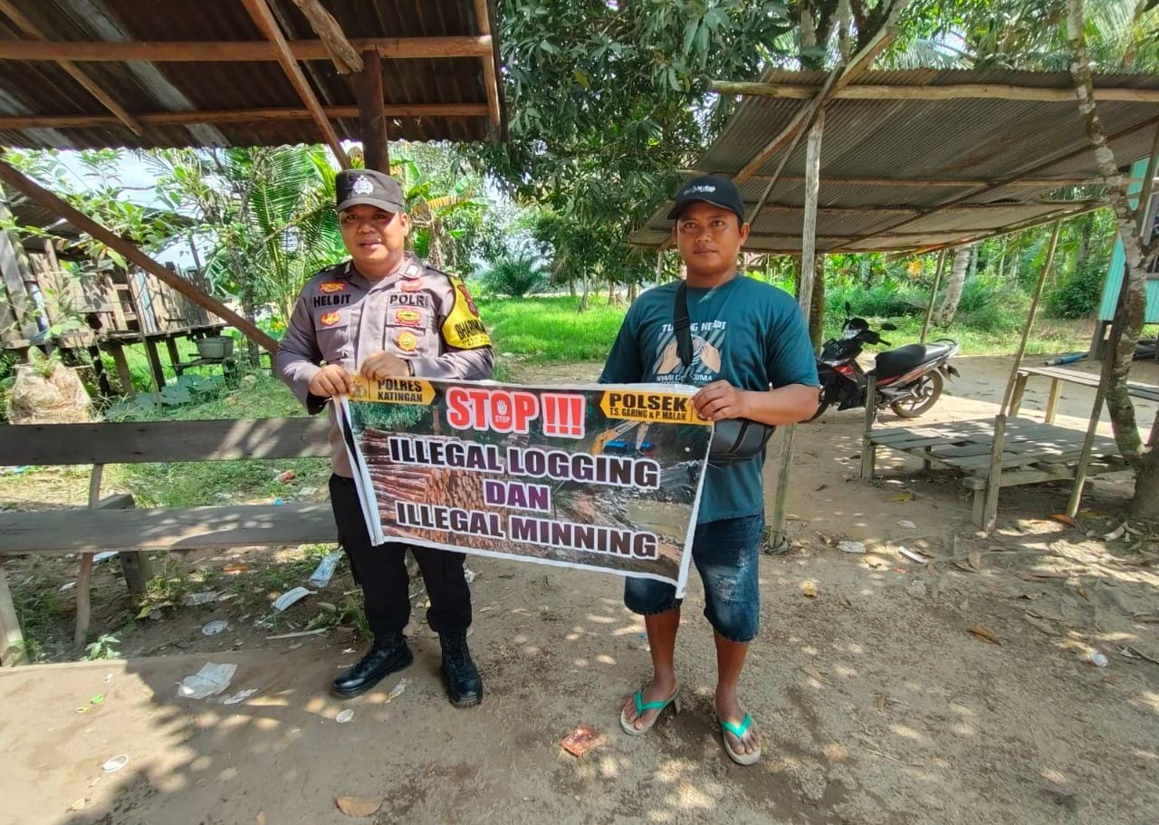 Tribaratanews.kalteng.polri.go.id-Polres Katingan – Salah satu cara Polsek Tws. Garing dan Pulau Malan, Polres Katingan, Polda Kalimantan Tengah, anggota Polsek Tws. Garing dan Pulau Malan melaksanakan Sosialisasi “Stop!!! Kejahatan Terhadap Lingkungan “Berupa Larangan Melakukan Kegiatan Ilegal Logging dan Ilegal Meaning”, Minggu (2/11/2025) Pagi.