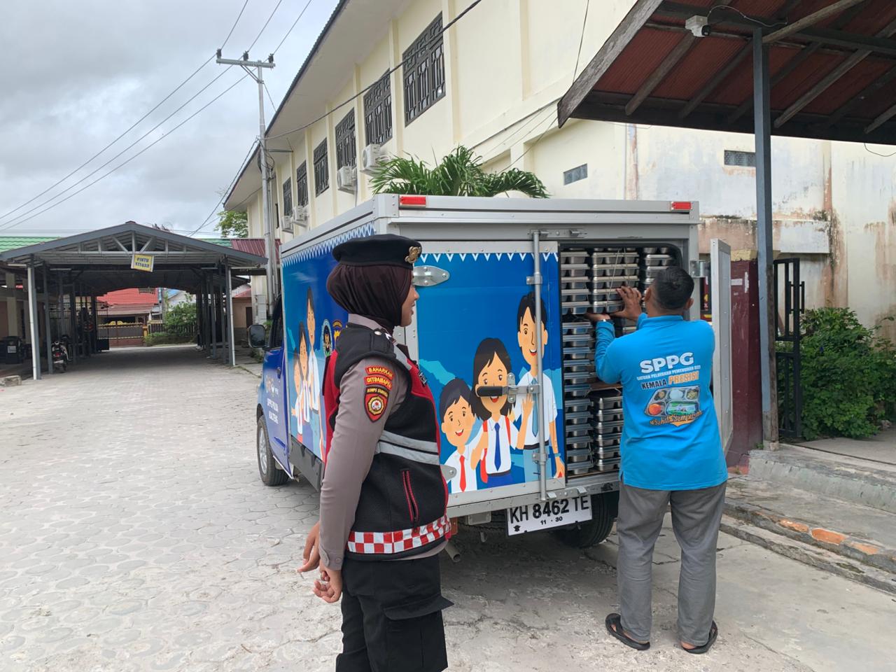 Palangka Raya – Memastikan Program Pemenuhan Gizi bagi anak sekolah berjalan lancar dan tepat sasaran, personel Polisi Wanita (Polwan) Ditsamapta Polda Kalimantan Tengah melakukan penyambangan ke Satuan Pelayanan Pemenuhan Gizi (SPPG) serta mengawal langsung proses distribusi Makan Bergizi Gratis (MBG) ke sejumlah sekolah penerima. Senin (09/12/2025).