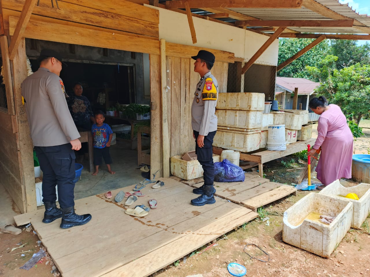 Polres Lamandau – Piket Polsek lamandau melakukan kegiatan sambang kerumah-rumah masyarakat dan tempat berkumpulnya masyarakat di Wilkum Polsek lamandau Kecamatan lamandau, Minggu (28/12/25) Pagi.
