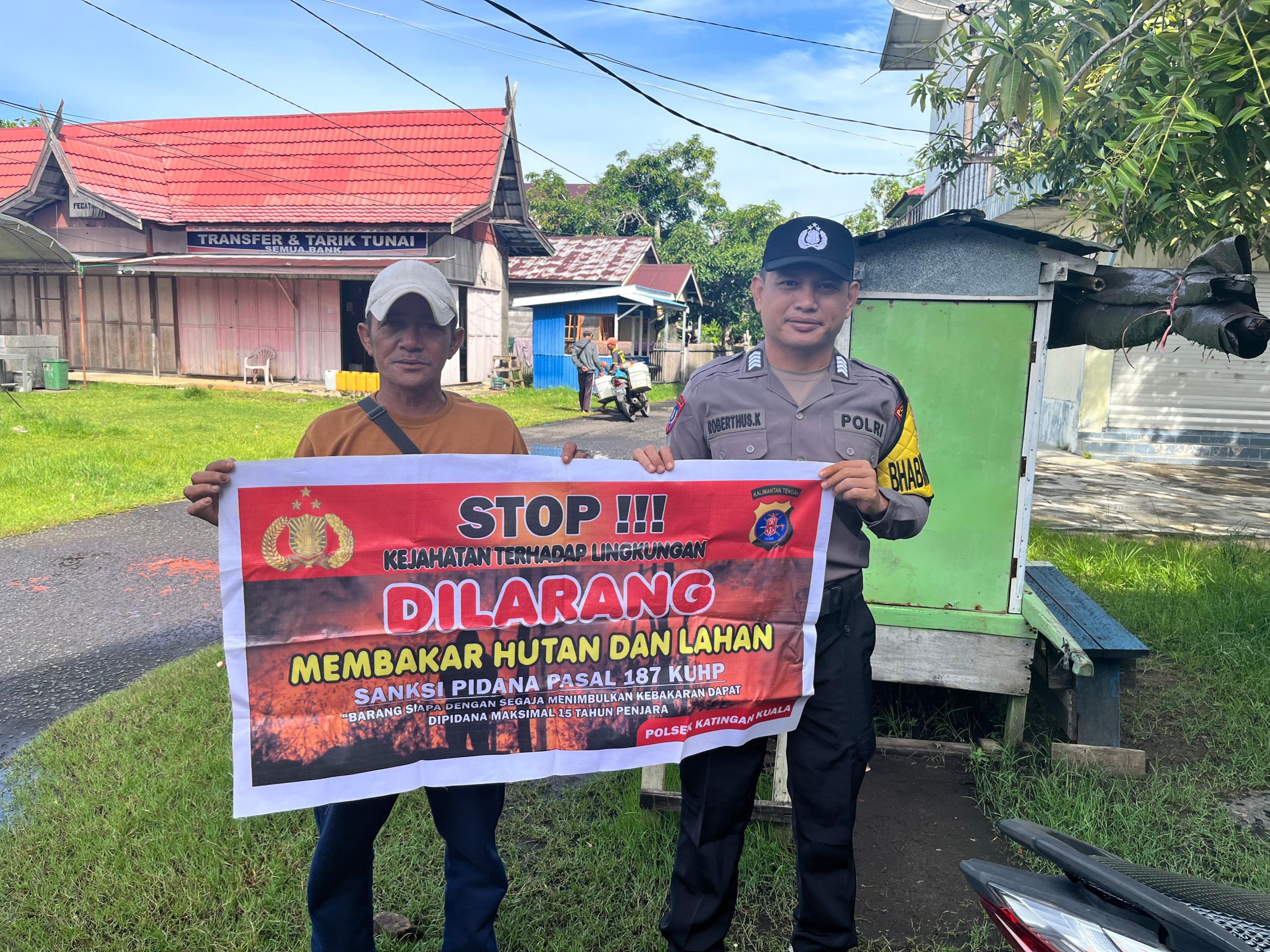 Kapolres Katingan AKBP CHANDRA ISMAWANTO , S. I. K., melalui Kapolsek Katingan Kuala Ipda Achmad Fachtar Manfalufti menjelaskan kegiatan Bhabinkamtibmas jajaran Polres Katingan dengan cara sosialisasi kepada masyarakat agar mengerti dan memahami maklumat kapolda kalteng tentang larangan karhutla serta mengerti sanksi dan denda akibat pembakaran tersebut.