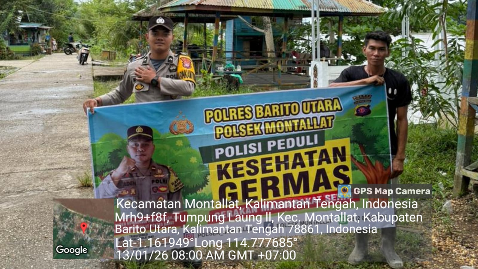 Tribratanews.kalteng.polri.go.id – Polres Barito Utara – Personel Polsek Montallat jajaran Polres Barito Utara, Polda Kalteng melaksanakan Sosialisasi Germas di Kel. Tumpung laung ll Kec. Montallat, Kab. Barito Utara.*Selasa (13/01/2026) Pagi mulai Pukul 08:00 WIB.*