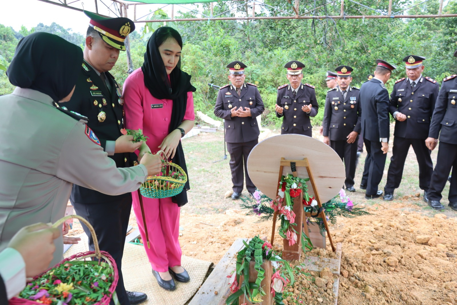 Upacara pemakaman dihadiri oleh pejabat utama Polres Lamandau, personel Polri, Bhayangkari, keluarga almarhum, serta masyarakat setempat. Prosesi berlangsung khidmat, diawali dengan upacara persemayaman, pembacaan riwayat hidup singkat, hingga penghormatan terakhir dan penurunan jenazah ke liang lahat.