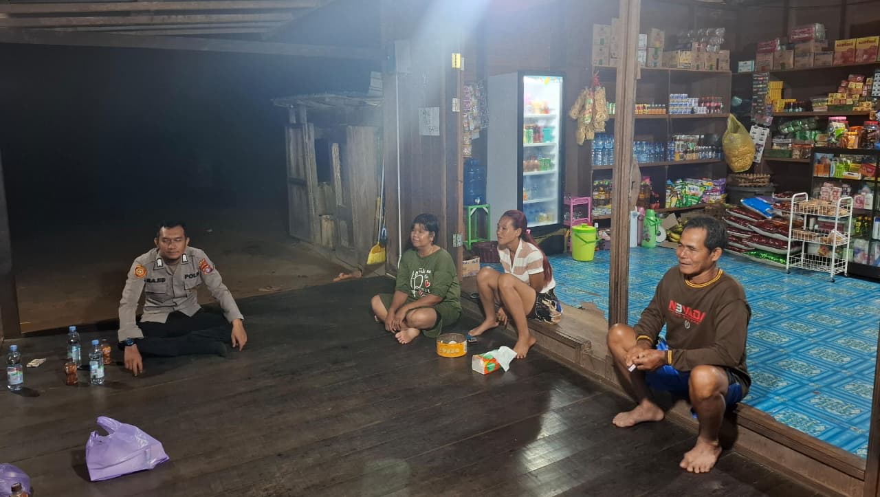 Personel Piket Polsek Lamandau Sambangi Warga yang Berkumpul, Sampaikan Imbauan Harkamtibmas