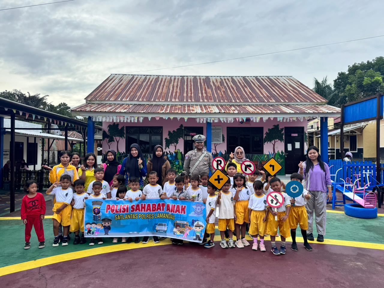 Kunjungan tersebut berlangsung dalam suasana hangat dan penuh keceriaan. Anak-anak tampak antusias menyambut kehadiran para anggota Sat Lantas yang hadir dengan pendekatan humanis dan komunikatif. Melalui metode interaktif seperti bermain, bernyanyi, serta dialog ringan, para petugas memperkenalkan sosok polisi sebagai sahabat yang melindungi, mengayomi, dan melayani masyarakat.