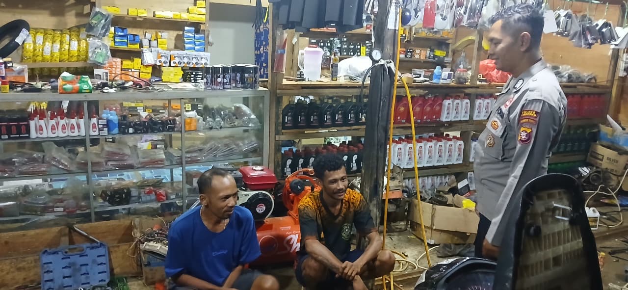 Personel Piket Polsek Lamandau Sambangi Masyarakat yang Bekerja di Bengkel, Sampaikan Imbauan Kamtibmas