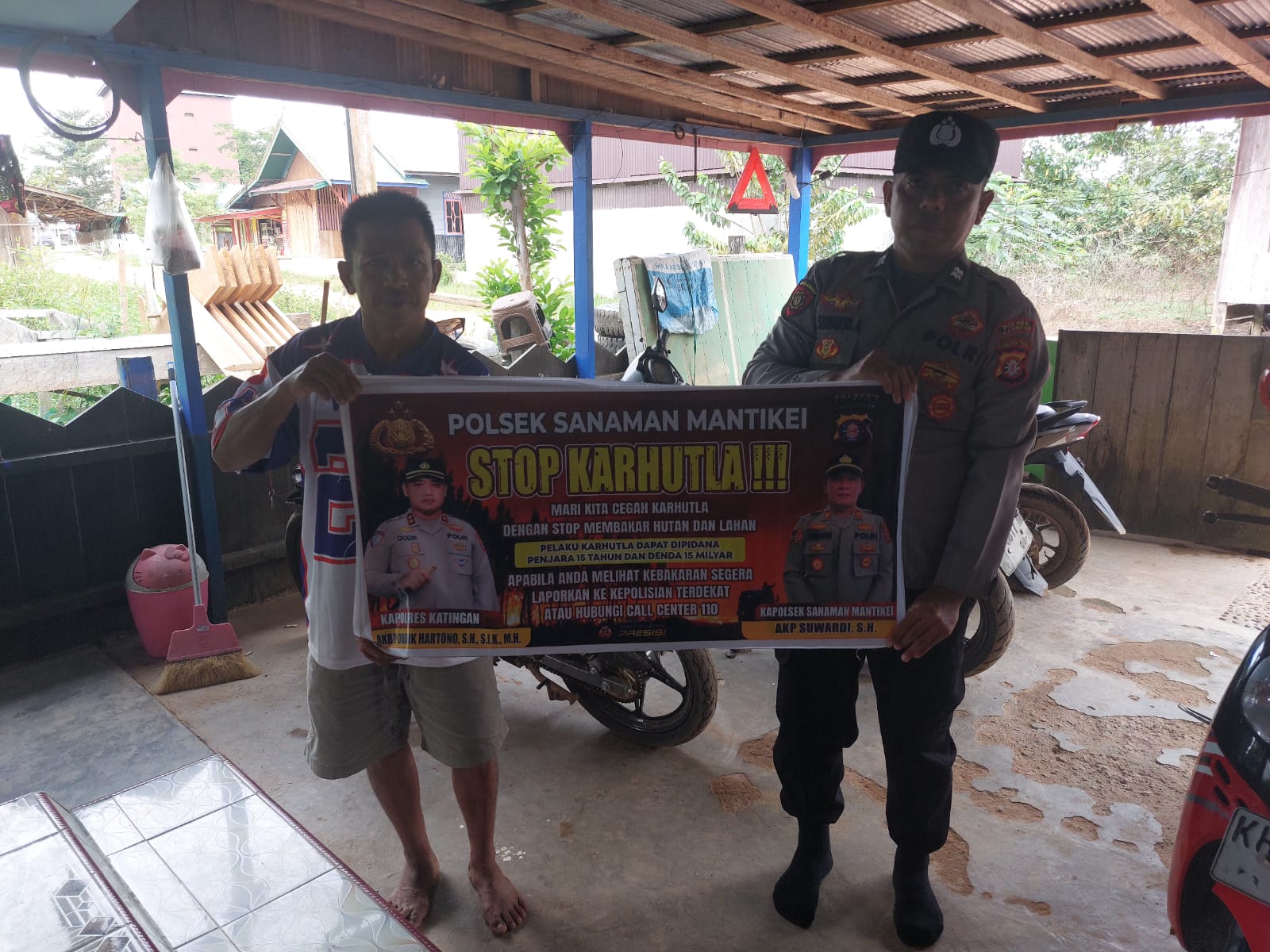 Kapolres Katingan AKBP DODIK HARTONO , S. H.,S.I.K,M.H. melalui Kapolsek S. Mantikei AKP SUWARDI, .S.H., menjelaskan kegiatan Bhabinkamtibmas jajaran Polres Katingan dengan cara sosialisasi kepada masyarakat agar mengerti dan memahami maklumat kapolda kalteng tentang larangan karhutla serta mengerti sanksi dan denda akibat pembakaran tersebut.