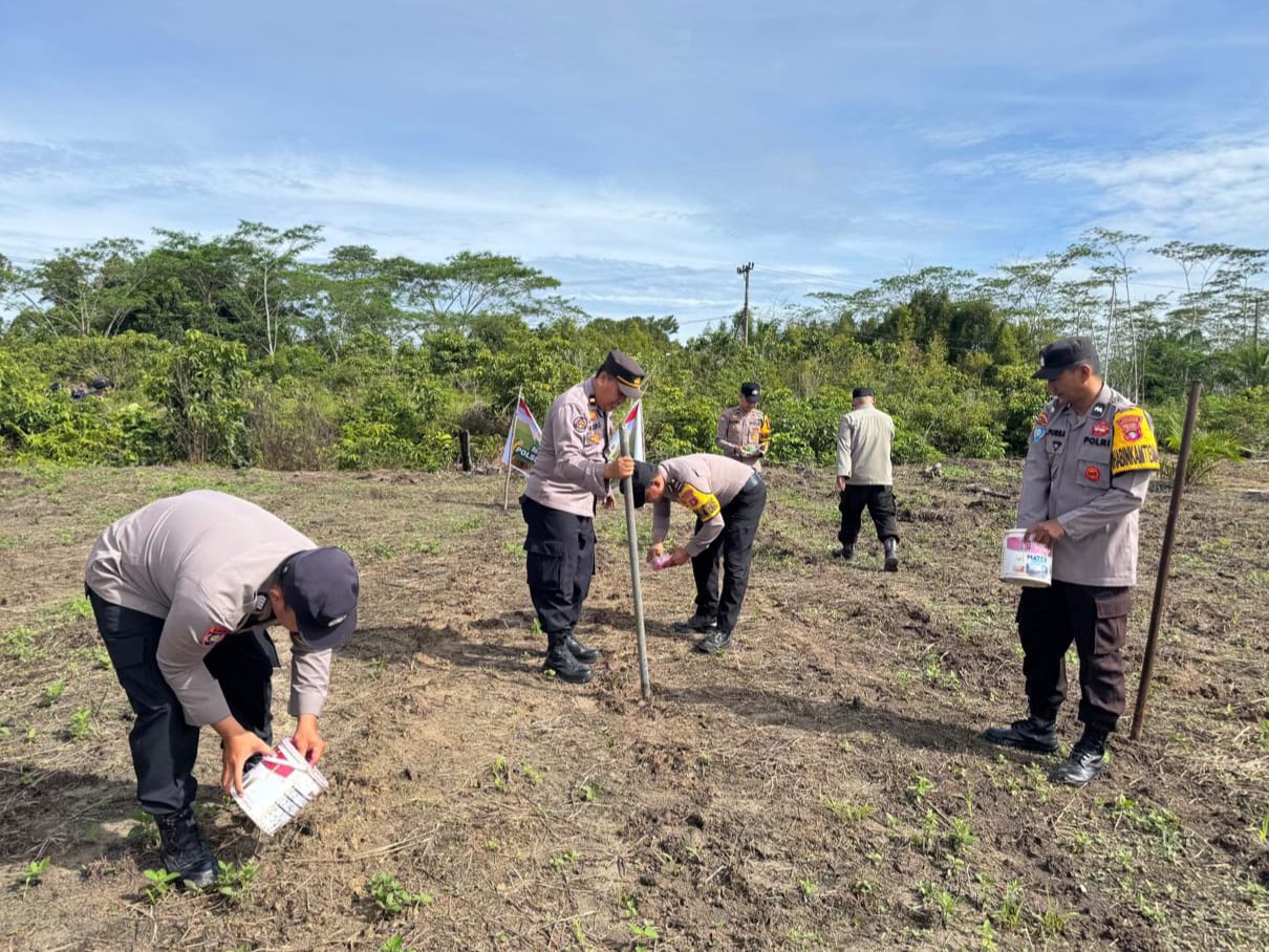 Polres Katingan- Polsek Tewang Sangalang Garing dan Pulau Malan, Polres Katingan Polda Kalteng bersama petani melaksanakan kegiatan penanaman jagung pipil hibrida di lahan pertanian masyarakat Desa Hapalam, Kecamatan Tewang Sangalang Garing, Kabupaten Katingan, Jum’at (20/2/2026) pagi.