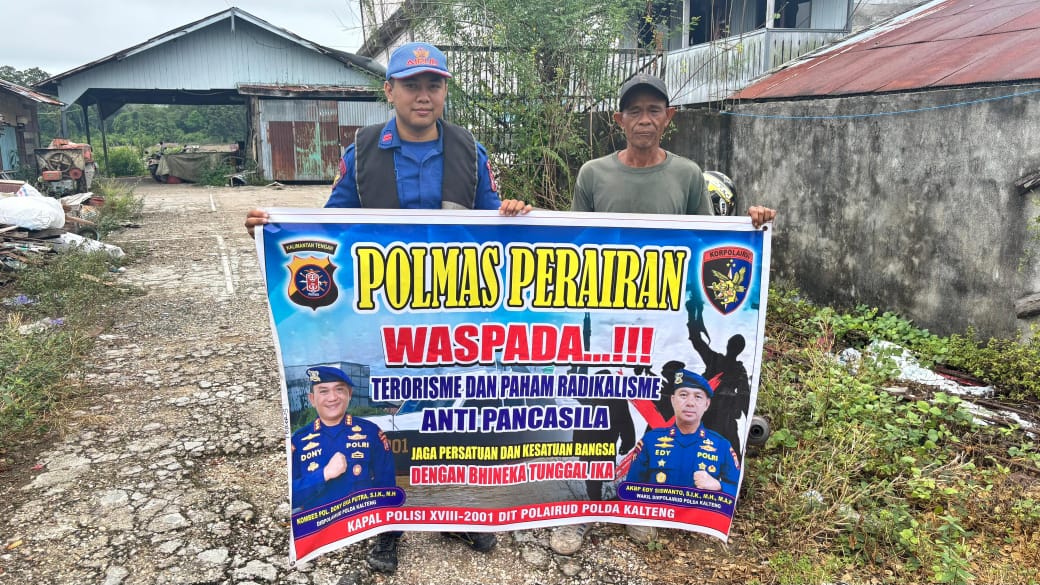 Buntok – Kapal Polisi XVIII-2001 Ditpolairud Polda Kalteng, melaksanakan kegiatan sambang ke masyarakat sekitar untuk memberikan himbauan dan edukasi tentang pentingnya waspada terhadap terorisme dan paham radikalisme anti Pancasila. Jumat (20/2/2026).