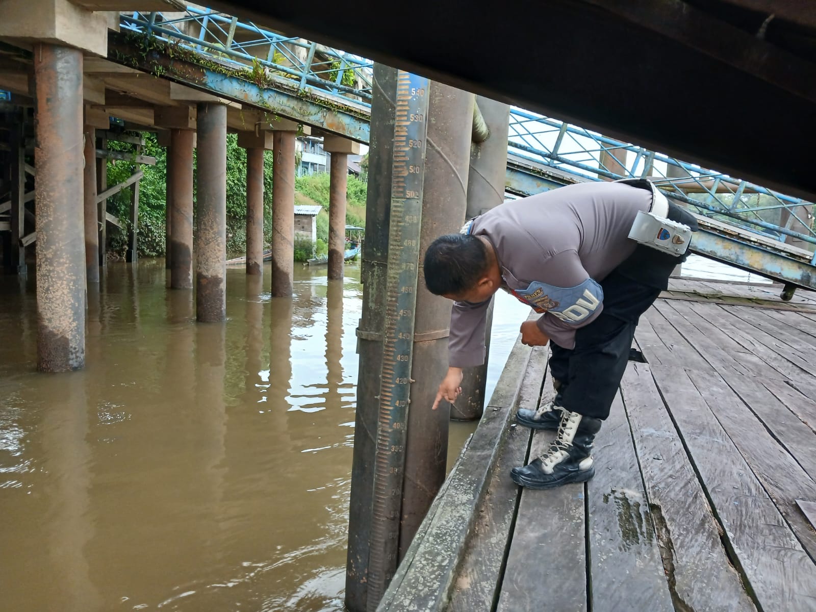 Lamandau – Personil Polsek Bulik melakukan kegiatan rutin pengecekan debit air DAS lamandau di TMA Kelurahan Nanga Bulik, Senin (23/2/26) pagi