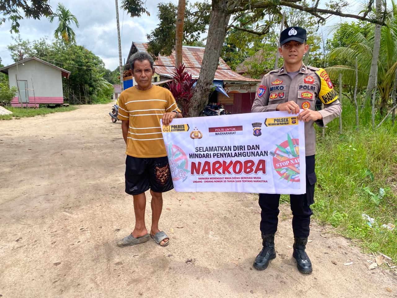 Polres Katingan- Personel Polsek Tewang Sangalang Garing dan Pulau Malan, Polres Katingan, Polda Kalteng, menyampaikan imbauan imbauan pencegahan narkoba kepada Warga Kecamatan Tewang Sangalang Garing, Kabupaten Katingan, Senin (23/2/2026) pagi.