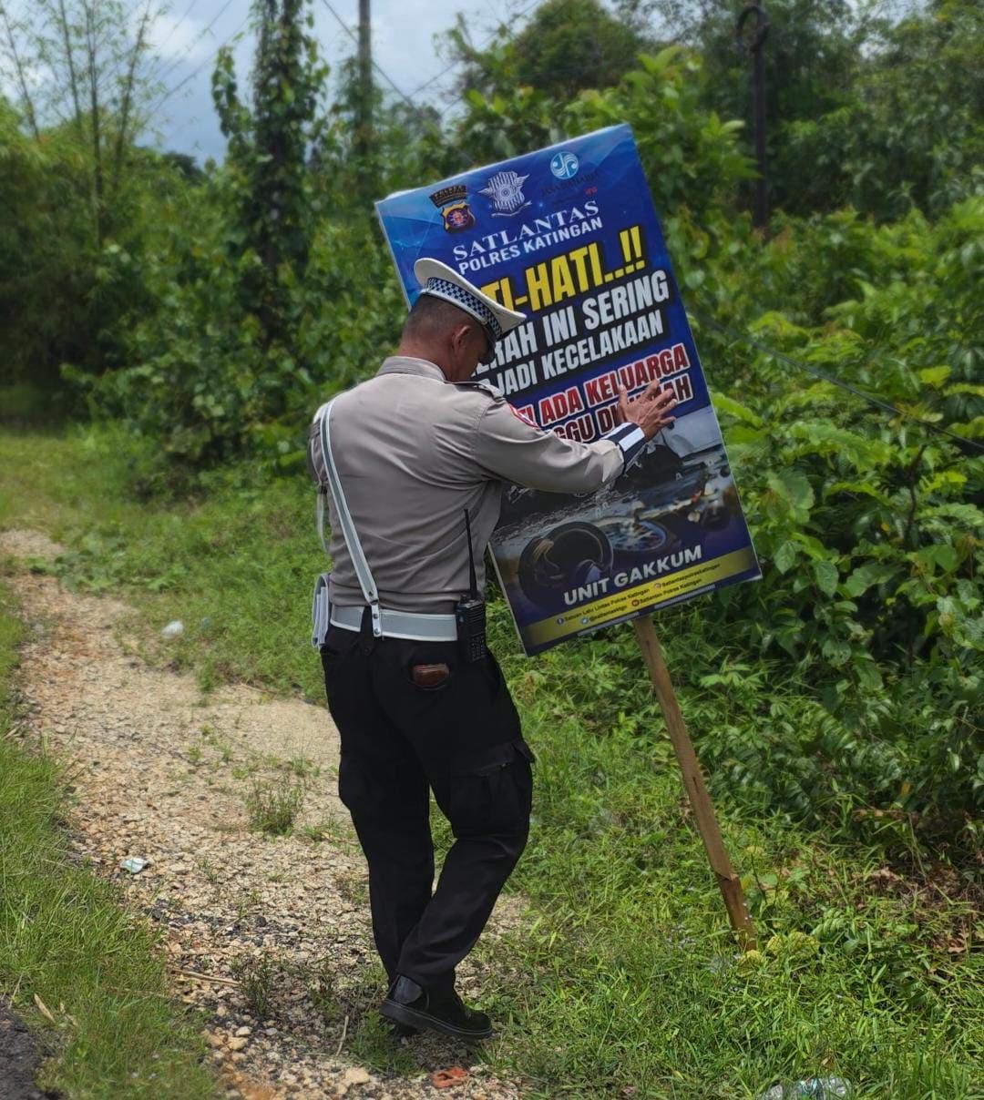 *Polres Katingan –* Dalam upaya meningkatkan kesadaran masyarakat terhadap pentingnya keselamatan di jalan raya, personel Satuan Lalu Lintas (Satlantas) Polres Katingan melaksanakan kegiatan pemasangan spanduk berisi imbauan rawan kecelakaan lalu lintas (laka lantas).