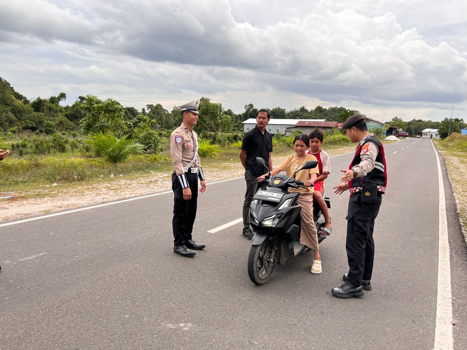 Polres Katingan – Personel Satlantas Polres Katingan melaksanakan kegiatan peneguran kepada Pengguna Jalan yang Tidak Menggunakan Helm.