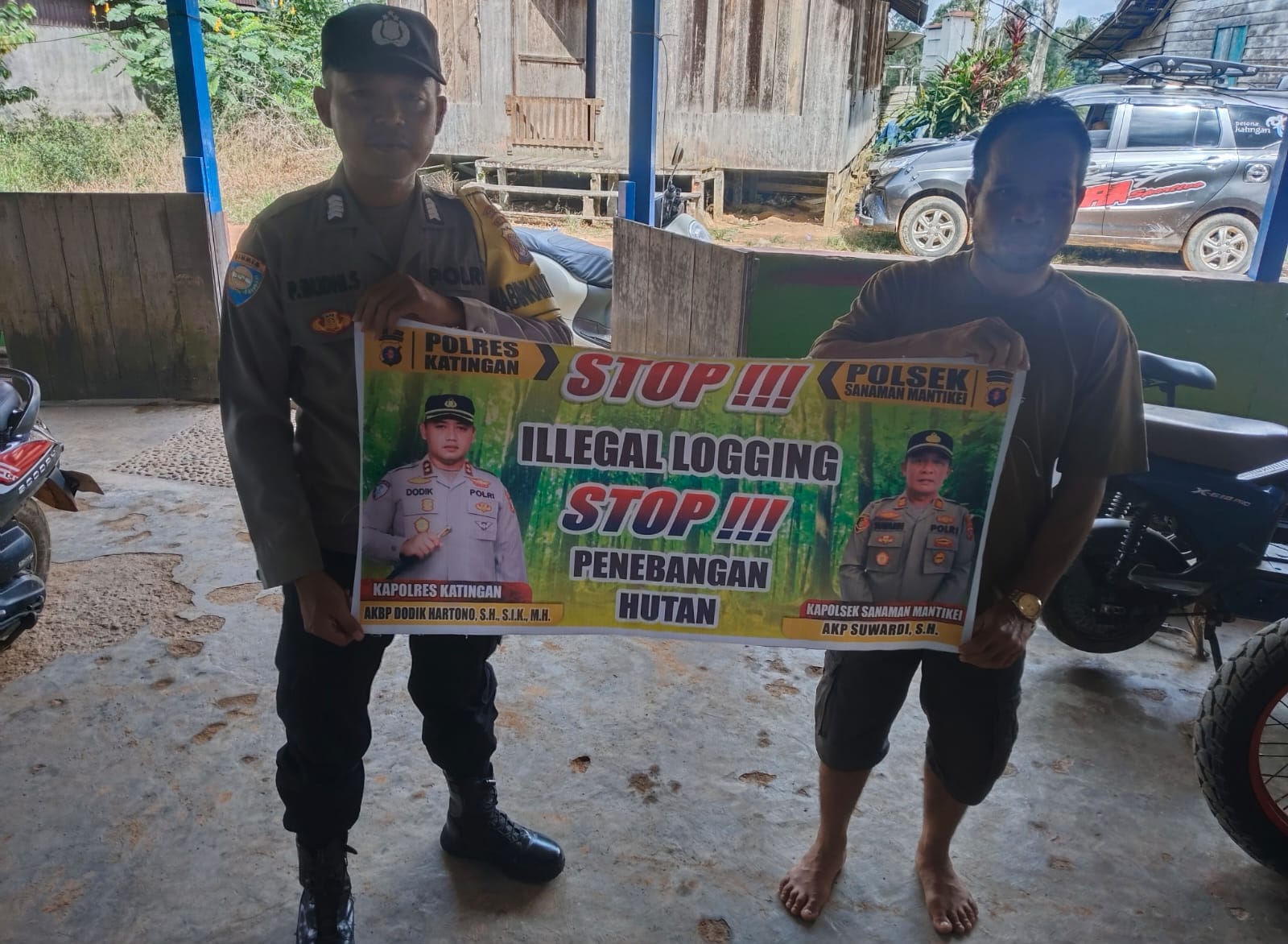 Kapolres Katingan AKBP DODIK HARTONO , S.H.,S.I.K.,M.H. melalui Kapolsek Sanaman Mantikei AKP SUWARDI , S.H menjelaskan kegiatan Bhabinkamtibmas jajaran Polres Katingan dengan cara sosialisasi kepada masyarakat agar mengerti dan memahami tentang larangan dan sangsi bagi pelaku pekerja Ilegal Loging serta mengerti bahwa dampak dan akibat yang di timbulkan akibat Ilegal Loging tersebut.