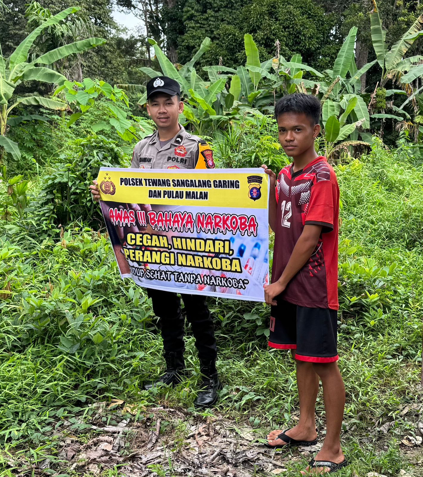 Melalui Media Spanduk, Polsek Tewang Sangalang Garing dan Pulau Malan Imbau Warga Tidak Terjerumus Penyalahgunaan Narkoba.