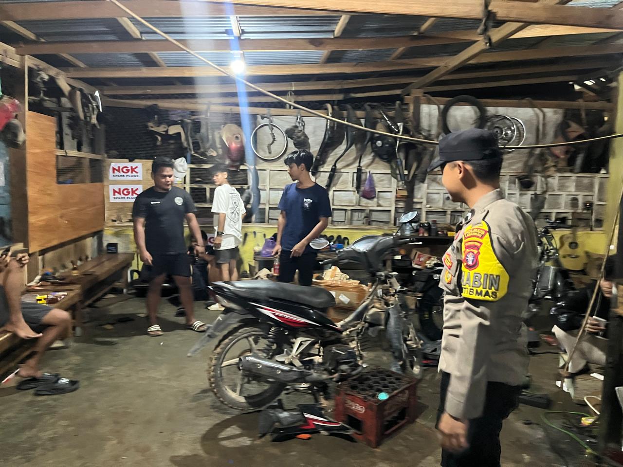 Menyambangi pekerja ditempat kerjanya dan pada kesempatan yang baik tersebut, Personil Polsek berdialog menyampaikan pesan-pesan kamtibmas. Berhubung cuaca yang tidak menentu untuk membatasi aktivitas di luar rumah serta untuk tetap disiplin menjaga kesehatan.