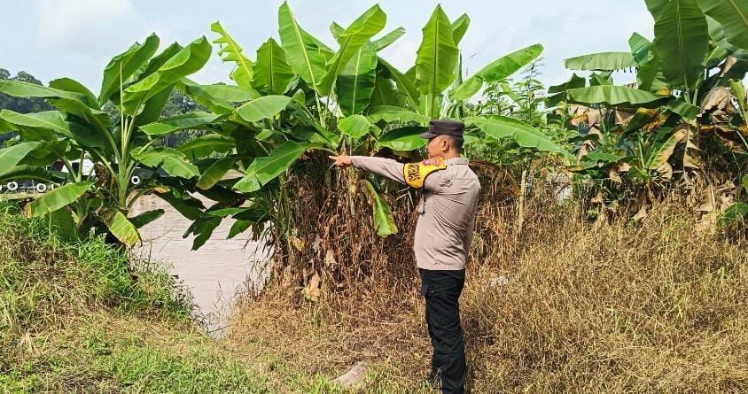 Polres Katingan- Personel Piket Sentra Pelayanan Kepolisian Terpadu (SPKT) II Polsek Tewang Sangalang Garing dan Pulau Malan, Polres Katingan, Polda Kalteng, Bripka Jon Praisen. melaksanakan pengecekan ketinggian debit air di Daerah Aliran Sungai (DAS) Katingan, wilayah Kelurahan Pendahara Kecamatan Tewang Sangalang Garing, Selasa (17/03/2026) siang.