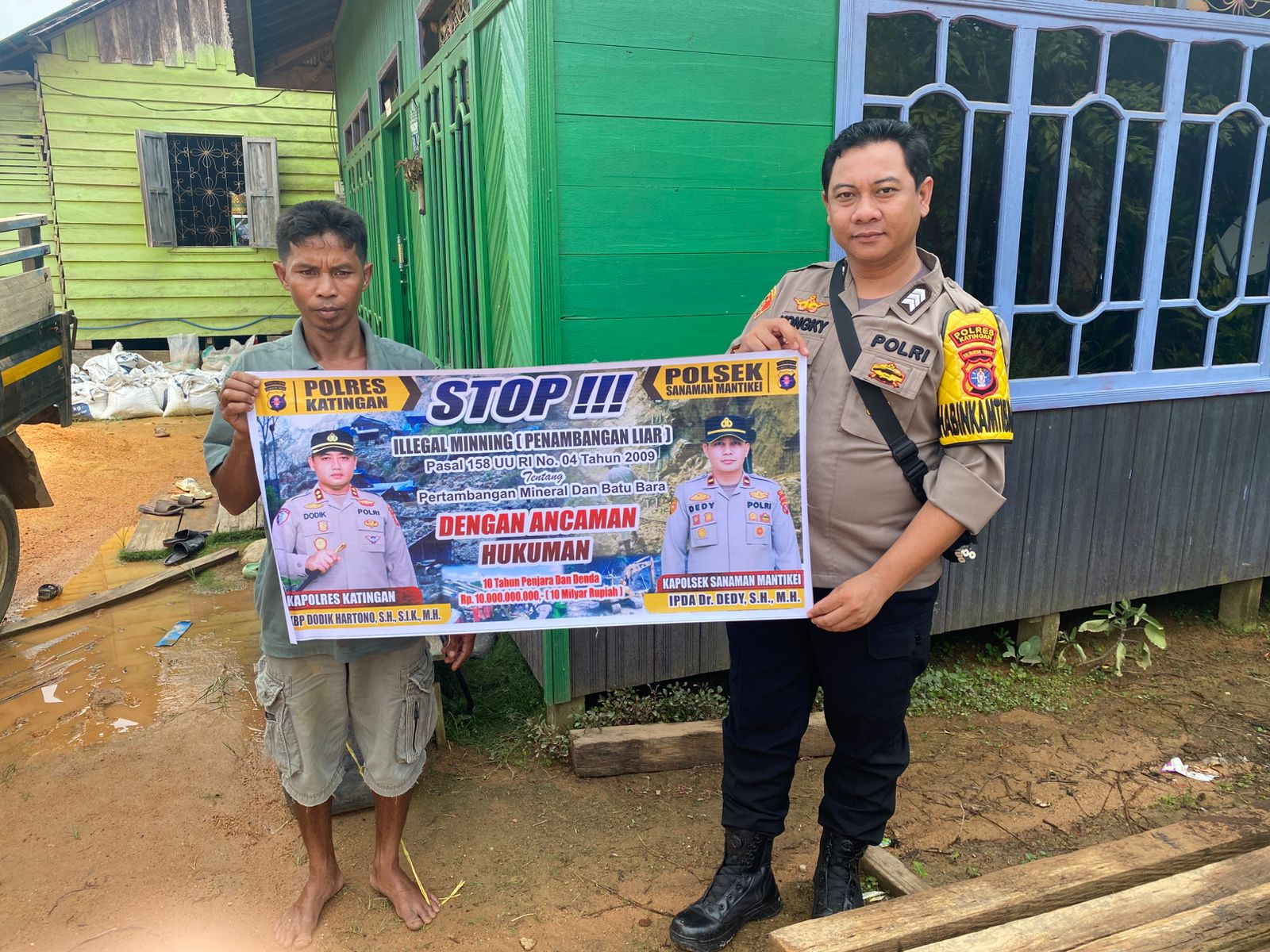 Kapolres Katingan AKBP DODIK HARTONO, S.H.,S.I.K.,M.H. melalui PS Kapolsek Sanaman Mantikei IPDA Dr. DEDY., S.H., M.H., menjelaskan kegiatan Bhabinkamtibmas jajaran Polres Katingan dengan cara sosialisasi kepada masyarakat agar mengerti dan memahami tentang larangan Ilegal Mining serta mengerti bahwa dampak dan akibat yang di timbulkan akibat Illegal mining tersebut.