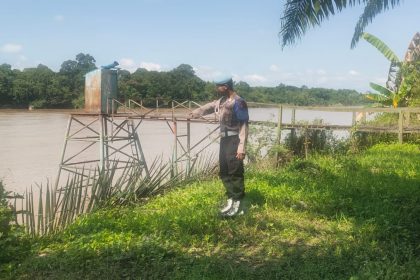 Polres Katingan – Mendeteksi potensi bencana banjir, Bhabinkamtibmas Polsek Katingan Hulu dan Bukit Raya, Polres Katingan, Polda Kalteng Brigpol Reaynold B. Butar-Butar melakukan pemantauan debi...