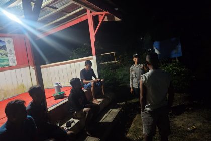 Polres lamandau – Bhabinkamtibmas Bripka Yoga Trapsilo Polsek Sematu Jaya, Menyambangi Piket jaga sat kamling RT. 11 Desa Mekar Mulya, Kec. Sematu Jaya, Kab. Lamandau, Prov. Kalteng yang sedang ...