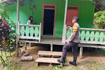 Lamandau – Personil Bhabinkamtibmas Brigpol Chandra Tri Prayoga Polsek Delang melaksanakan sambang ke Rumah masyarakat di Warga Masyarakat Warga Desa Riam Tinggi, Kec. Delang, Kab. Lamandau Prov. Kalt...