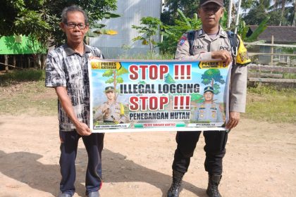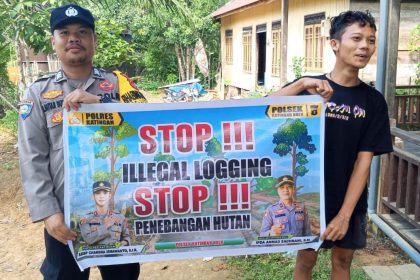 olda Kalteng – Polres Katingan – Personel Bhabinkamtibmas Polsek Sanaman Mantikei Brigpol Yoga Pranoto melaksanakan sosialisasi tentang larangan terhadap pelaku Ileggal Loging kepada masyarakat di Des...