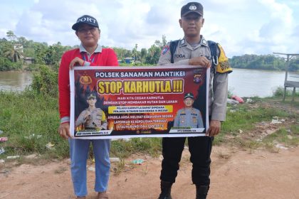 Polda Kalteng – Polres Katingan – Personel Bhabinkamtibmas Polsek S. Mantikei Brigpol Yoga Pranoto melaksanakan soasialisasi maklumat kapolda kalteng tentang larangan pembakaran hutan dan lahan (Karhu...