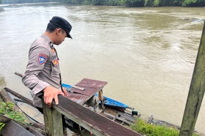 Polres Lamandau – Personel Polsek Lamandau Melaksanakan Patroli dan Pantau Cek debit air Sungai Lamandau Antisipasi terjadinya Bencana banjir di Wilayah Kabupaten Lamandau Khususnya Kecamatan La...