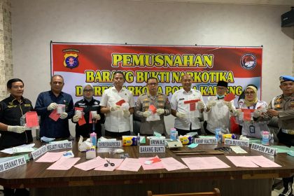 Polda Kalimantan Tengah memusnahkan narkotika jenis sabu sebanyak 1.250,6 gram (1,25 Kilogram) dan narkotika jenis ekstasi sebanyak 43 butir di Kantor Direktorat Reserse Narkoba (Ditresnarkoba) Polda ...