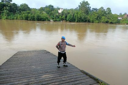 Polres Katingan – Mendeteksi potensi bencana banjir, Bhabinkamtibmas Polsek Katingan Hulu dan Bukit Raya, Polres Katingan, Polda Kalteng Brigpol Reaynold B. Butar-Butar melakukan pemantauan debi...