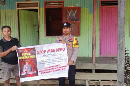 Polda Kalteng – Polres Katingan – Personel Bhabinkamtibmas Polsek Katingan Hulu dan Bukit raya Brigpol Reaynold Butar-Butar melaksanakan sosialisasi tentang larangan terhadap pelaku Ilegal Mining kepa...