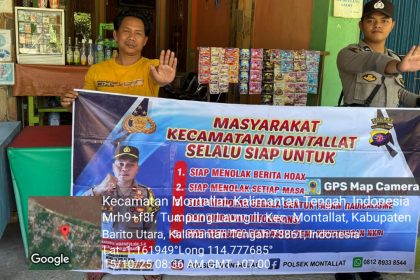 Tribratanews.kalteng.polri.go.id – Polres Barito Utara – Polsek Montallat menggelar sosialisasi tentang bahaya hoax (berita bohong) dan dampak negatifnya bagi masyarakat. Kapolres Barito Utara, AKBP S...